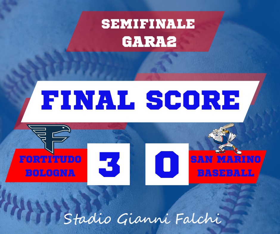 Niente da fare in gara2 di semifinale per il San Marino Baseball. La Fortitudo Bologna vince 3-0 al Gianni Falchi e impatta la serie grazie