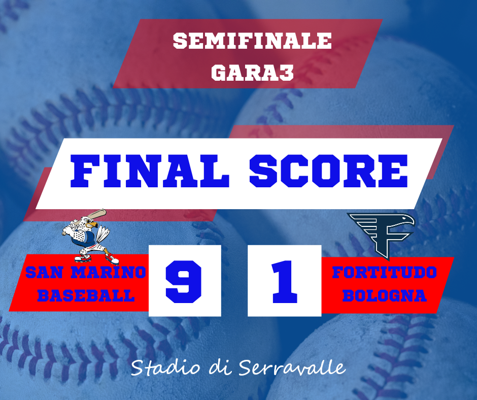 Gara3 finisce nelle mani del San Marino Baseball, che passa in vantaggio 2-1 nella serie e in gara4 avrà il primo match-point a disposizione per
